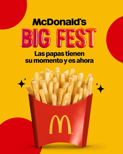 McDonald’s celebra con su “Big Fest”, que incluye descuentos en combos, papas fritas regulares de regalo y un 2×1 en su aplicación. Además, realiza “La Ruta de la Papa”, un concurso en Instagram con premios de hasta 72 papas grandes para dos personas.