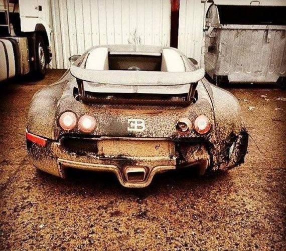 De acuerdo a lo informado por el portal especializado en tuercas, Autoblind, el Bugatti que pertenece a un concesionario de autos de lujo que habría sufrido un choque por la retaguardia en 2013 (lo impactó un Aston Martin). Tras el incidente, el Veyron quedó ahí, completamente abandonado.