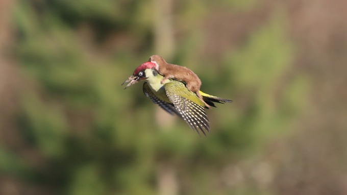 El insólito animalito que pillaron ‘cabalgando’ arriba de un pájaro carpintero