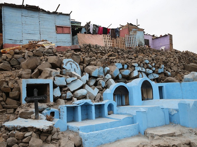 El camposanto, que funciona irregularmente desde hace más de un siglo, se ubica en la provincia del Callao, colindante con la capital peruana, entre dos asentamientos humanos, y está mimetizado con las precarias casas y edificios del lugar. Allí viven 2.000 familias que tienen a este cementerio de 27.000 m2 compartiendo espacios con un colegio y un parque donde juegan los niños en las tardes.