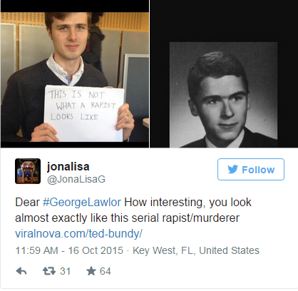 “Querido Georg Lawlor. Que interesante, luces exactamente igual que este serial asesino/violador”
