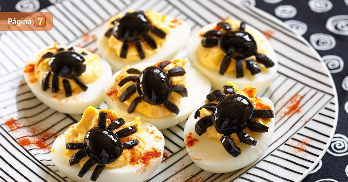 Coloca los Huevos Arañas en una bandeja o plato, y acompaña de aderezos a gusto para dar sabor. Por último, disfruta de este aperitivo terrorífico y saludable en tu fiesta de Halloween.