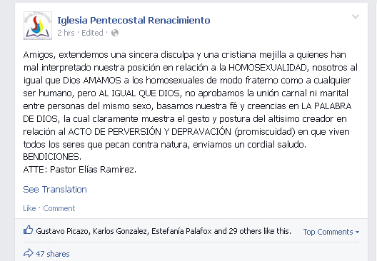 Posteriormente, esta iglesia subió un extraño mensaje de disculpas, antes de que su página fuera borrada de Facebook: