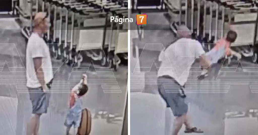 Tras fijarse en que nadie estuviera poniéndole atención en el aeropuerto internacional Sheremetyevo, tomó bruscamente al menor de edad y lo azotó fuertemente contra el piso .