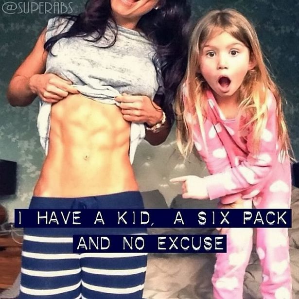 “Tengo una niña, un six pack y ninguna excusa”, fue la frase motivacional que desató la polémica. En esta, se puede ver a su hija con cara de impresión mientras apunta a su trabajado cuerpo. La idea de Abby era motivar a otras madres para que perdieran los kilos demás que deja el embarazo… pero a varias no les gustó mucho la manera.