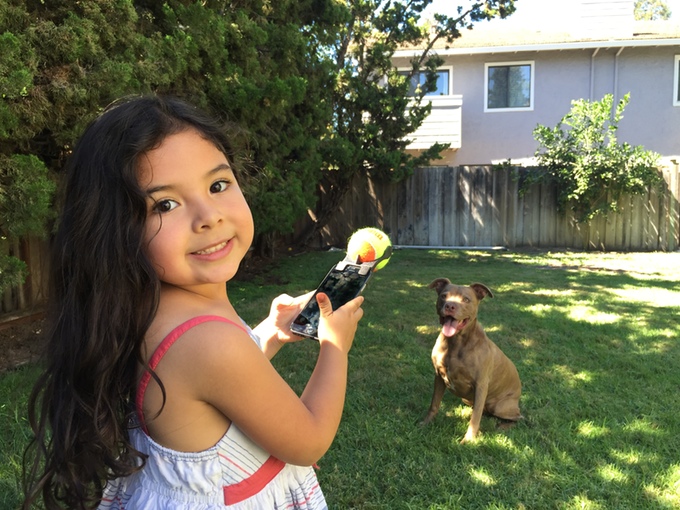 Se trata del “Pooch selfie”, un aparato que consiste en un soporte donde se instala una pequeña pelota, y que va adherido al teléfono. Así, se supone que el animal estará atento al movimiento de la pelota, mirando directamente a la cámara.