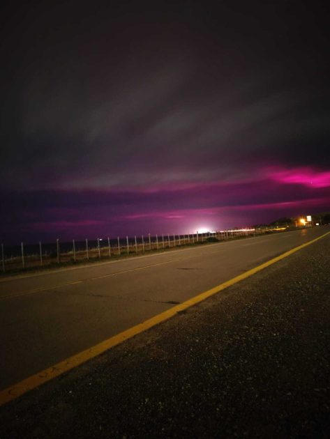 En ciudades como Porvenir y Punta Arenas anoche en la madrugada se pudo ver el cielo teñido de morado y rosado al capturar las imágenes con una exposición de 30 segundos, según reportan usuarios en redes sociales.