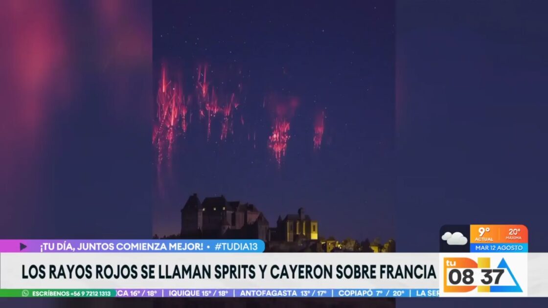 En el matinal de Canal 13, mostraron registros de unos rayos rojos captados en Francia, de apariencia muy curiosa, pues de hecho parecían pirotecnia… pero no lo eran.