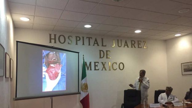 “Hace aproximadamente 2 años, sus familiares trajeron a la paciente a la ciudad de México, debido que presentó con disfagia y deformidad facial severa a nivel del tercio inferior facial izquierdo”, explicó el doctor Carlos Liceaga del recinto de salud de ciudad de México.