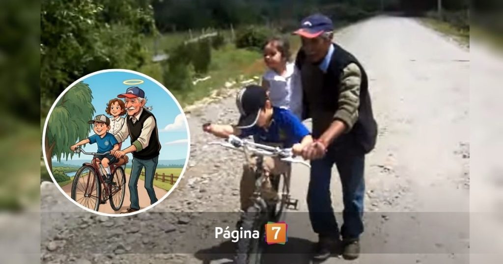 Grabado alrededor de 2007, el registro muestra a Areyuna en una escena cotidiana junto a sus nietos, quienes pedaleaban por un camino rural.