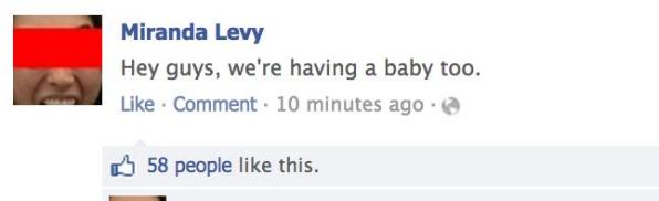 Miranda Levy quiso compartir con todos sus amigos de Facebook una gran noticia. Su novio le había pedido matrimonio y pese a que no tenía un anillo de verdad, estaba igual de feliz.