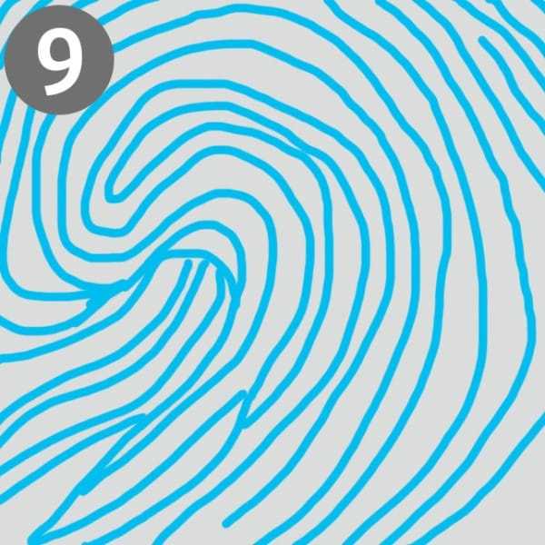 Lo primero que debes hacer es ver tu mano derecha con los dedos extendidos para luego observar cada una de tus huellas digitales. Ahora elige la que mejor se vea y compárala con las que te mostraremos a continuación. ¿Cuál de los modelos se adapta mejor a tus huellas?