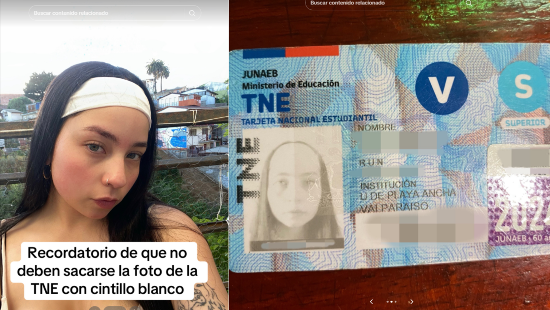 “Recordatorio de que no deben sacarse la foto de la TNE con cintillo blanco”, escribió junto a una fotografía tomada por ella misma y la de su identificación universitaria.
