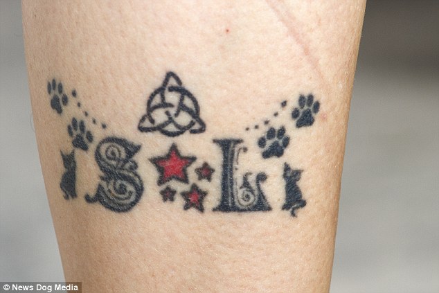 La diseñadora web afirmó al medio inglés Daily Mail que nunca antes había estado tan feliz ni entregada a sus esposos felinos: Spider y Lugosi. Y para demostrar que su amor va en serio, se tatuó las iniciales de ambos gatos en su pierna derecha.