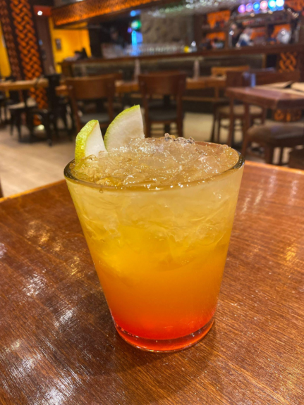 Después, se añade un toque de granadina solo para que quede en fondo, pero ojo, que no se vuelve a mezclar. Por último, se decora con rodaja de limón pica fresco.