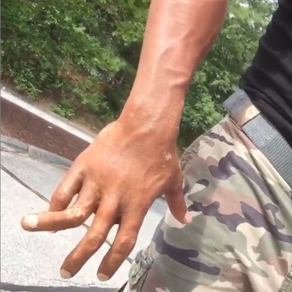 El umbral de dolor de esta celebridad debe estar muy alto para poder soportar de manera estoica la luxación de uno de los dedos de su mano. Sí, el musculoso hombre de acción no es de hierro.